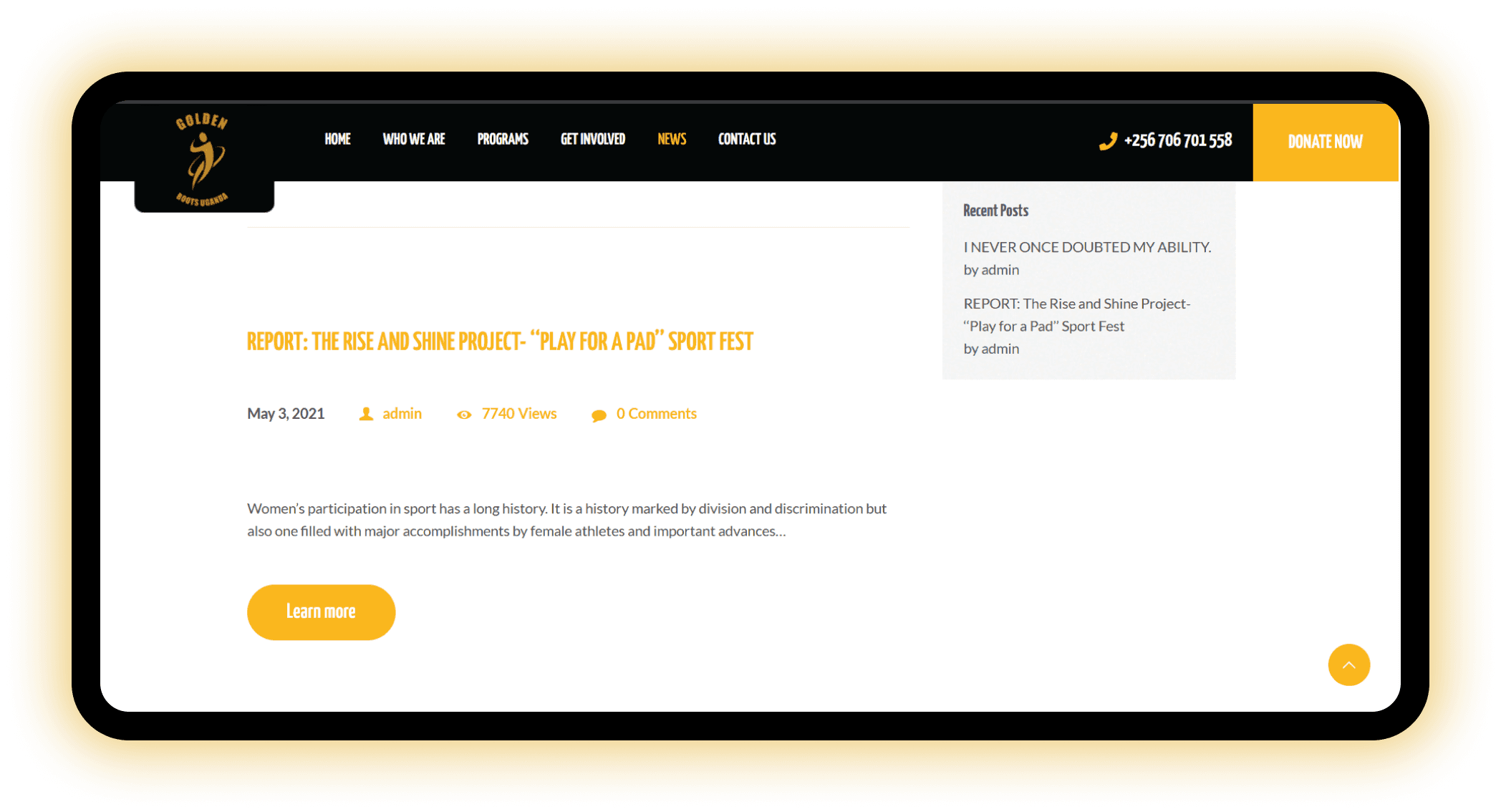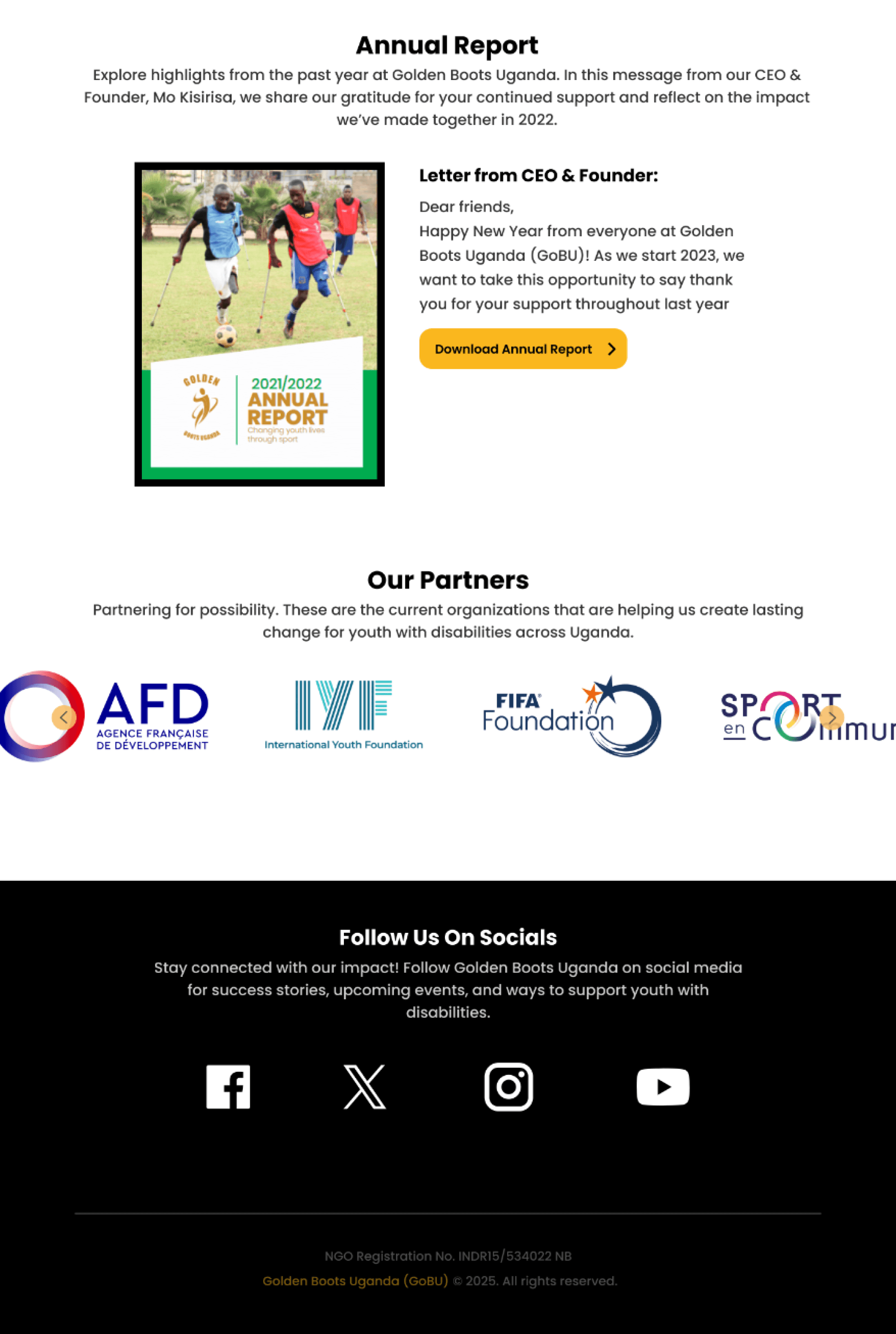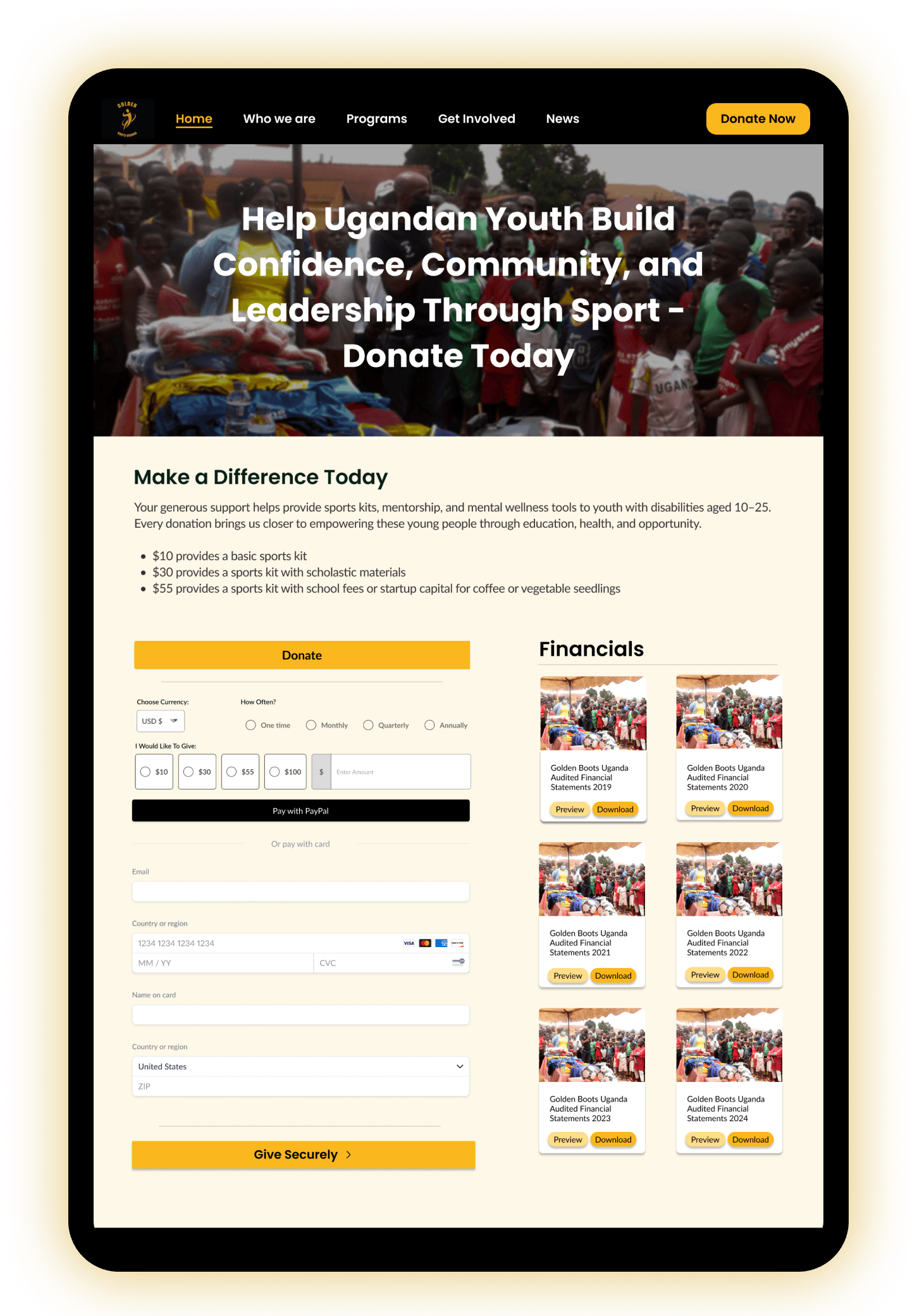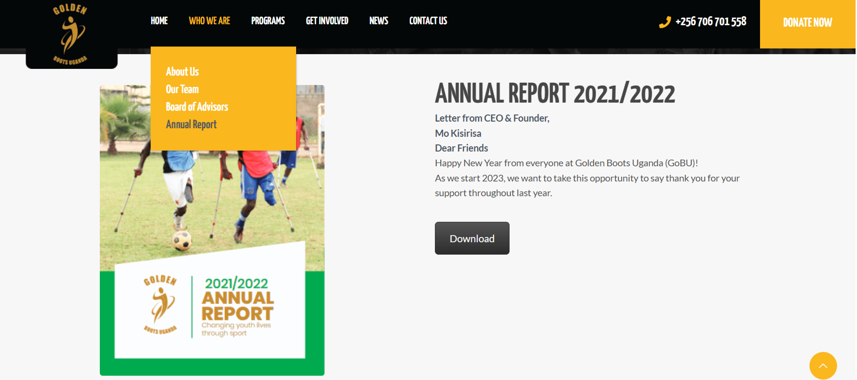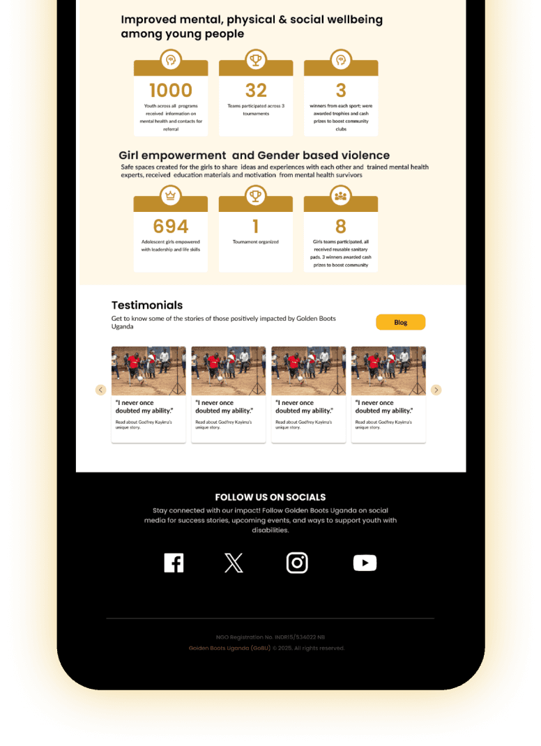 Without proof of impact from the people the organization serves, visitors on the website may not make a direct connection of the work that goes into Golden Boots Uganda.